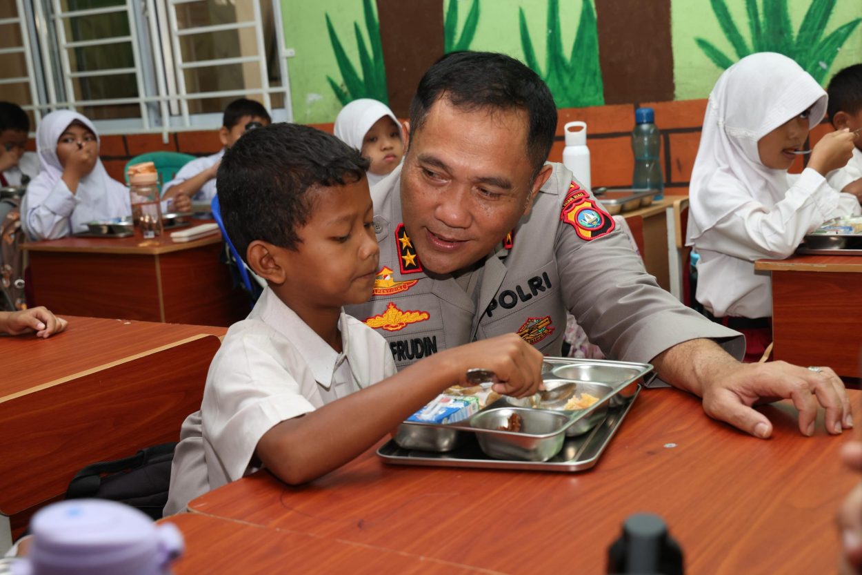 Tribratanews.kepri.polri.go.id – Kapolda Kepri Irjen Pol. Asep Safrudin, S.I.K., M.H., bersama Wakapolda Kepri Brigjen Pol. Dr. Anom Wibowo, S.I.K., M.Si., Irwasda Polda Kepri, para Pejabat Utama Polda Kepri, Ketua Bhayangkari Daerah Kepri Ny. Detta Asep Safrudin, Wakil Ketua Bhayangkari daerah Kepri Ny. Erie Anom Wibowo, meninjau pelaksanaan program Makan Bergizi Gratis di SDN 001 Nongsa, Selasa (9/9/2025).